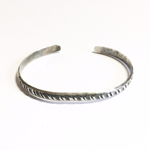 古典期のナバホスタイルによく使われたスタンプワークで素朴でシンプルなデザインですが力強さを感じます。